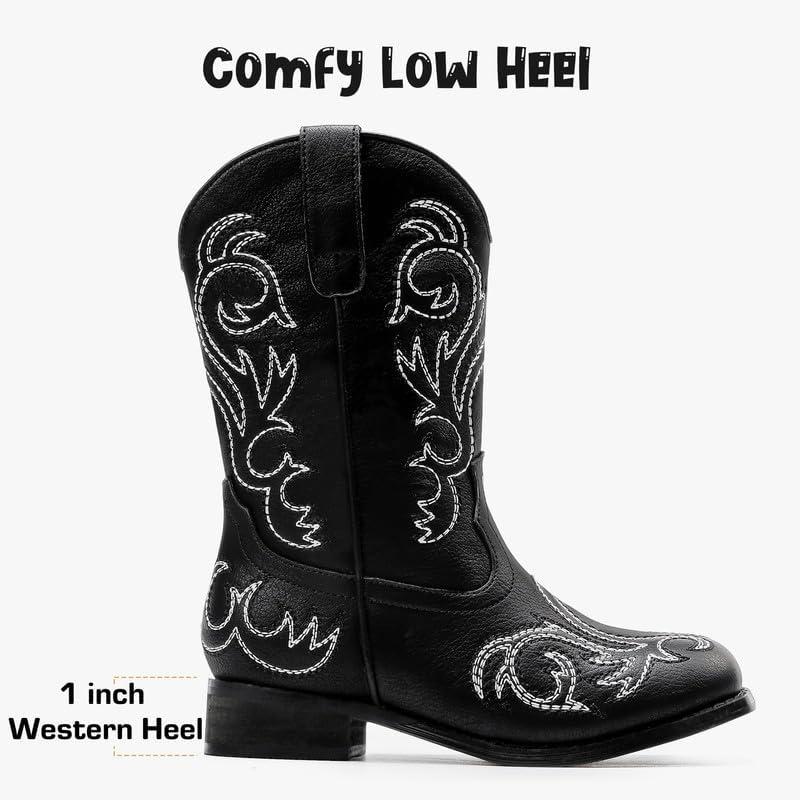 imageCowboy Boots for Girls Boys Kids Cowgirl Riding Boots Square Toe Western Embroidery MidCalf Birthday Party Toddler Big KidBlack